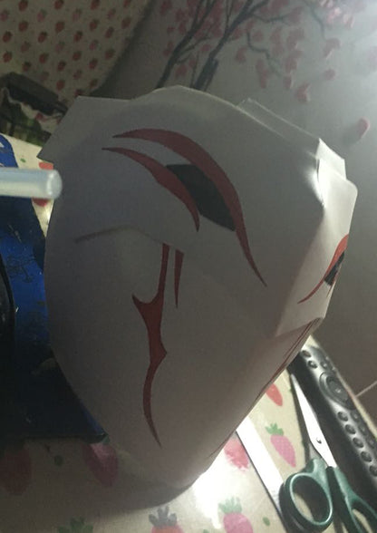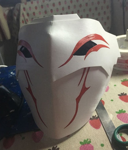 This White Fang Lieutenant Grimm Mask is designed to fit almost any face shape, secured with an adjustable elastic band for a snug and comfortable fit.